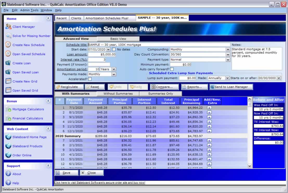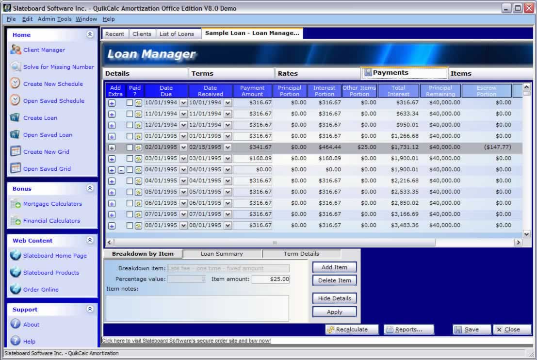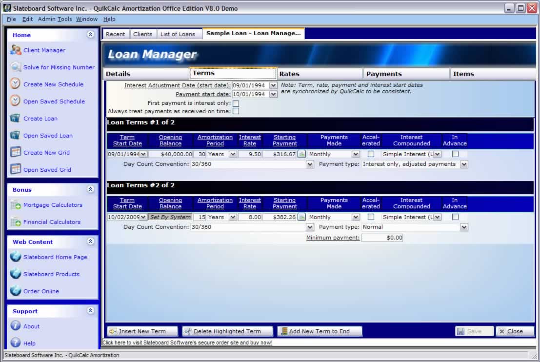 Interest (U.S. Rule) loan. QuikCalc automatically