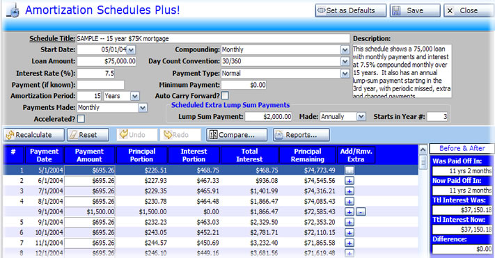 VehiCalc Plus! includes QuikCalc's Amortization Schedules