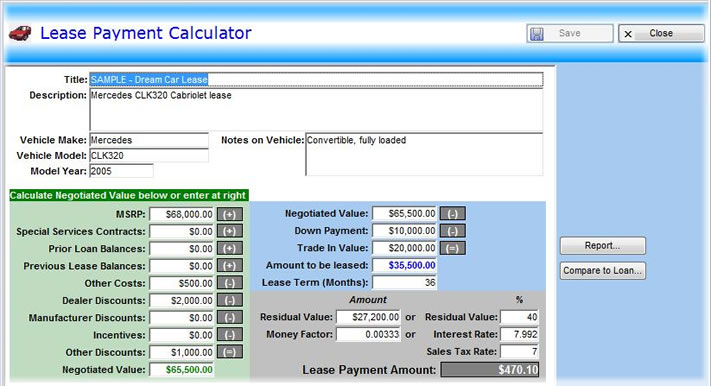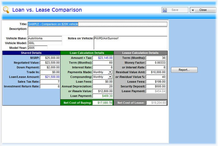 Car Loan vs. Lease Analyzer allows you to quickly calculate